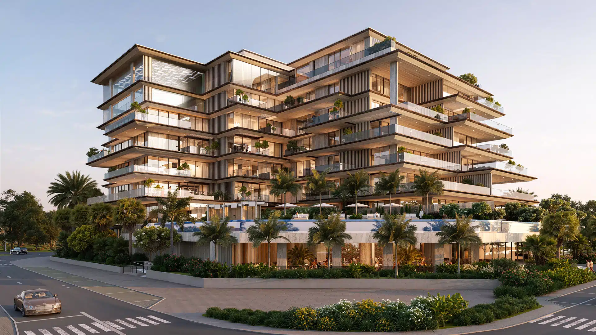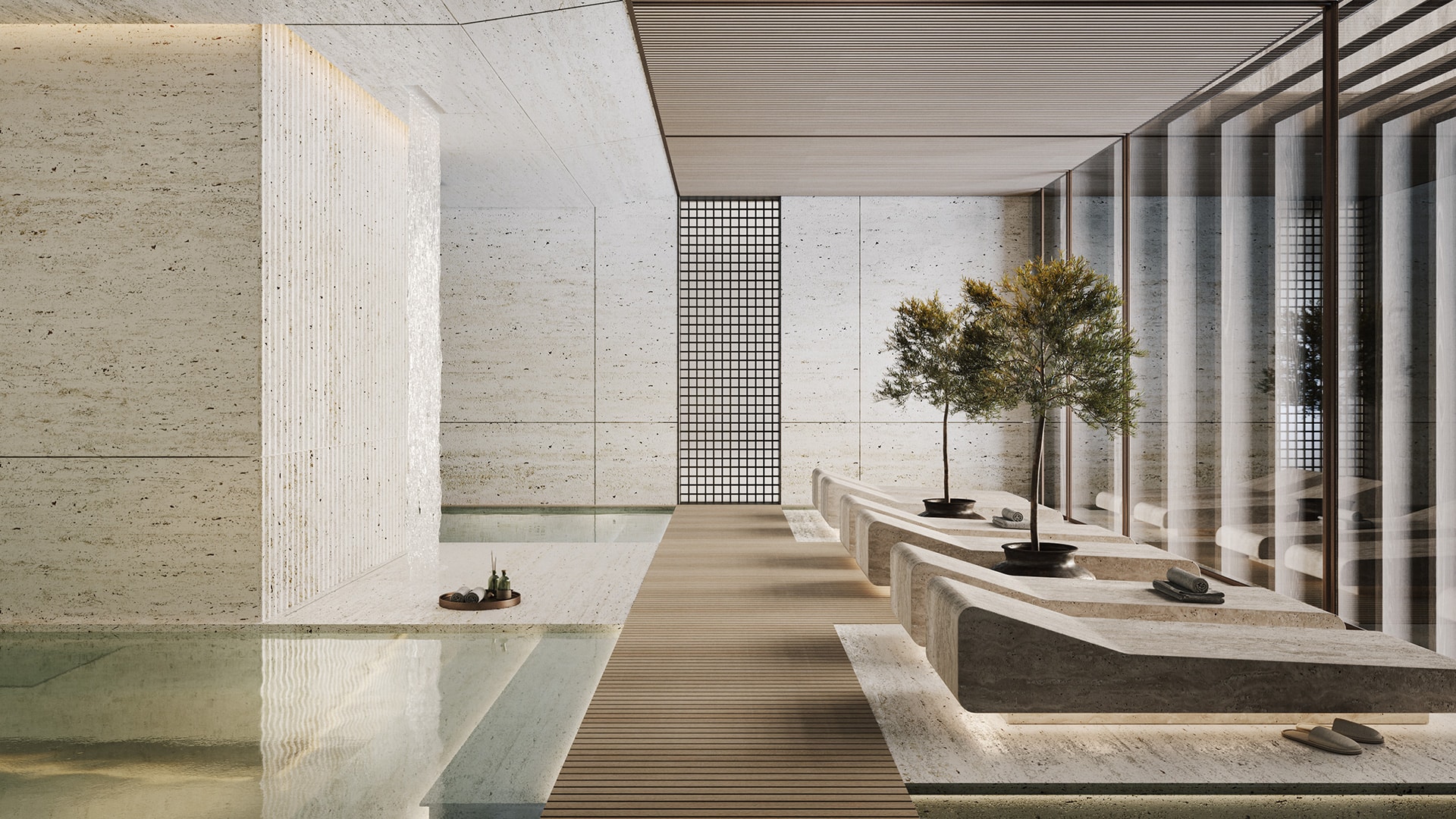 This G+7 architectural masterpiece reflects a fusion of Japanese minimalism and Italian craftsmanship. Every element has been meticulously curated to evoke harmony and sophistication — from the graceful façade to the thoughtful spatial design. The interiors feature premium natural materials such as Calacatta stone, travertine, bronze metal, and oak wood, emphasizing timeless quality and refined craftsmanship. Each residence is fully furnished with bespoke Italian furniture, offering a seamless blend of form and function.