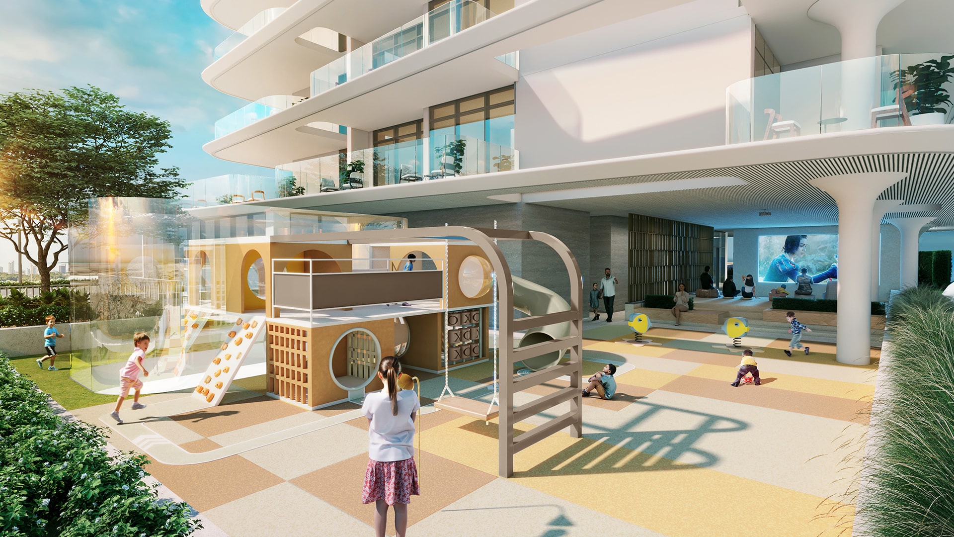 Sanctuary offers a comprehensive range of amenities focused on wellness, relaxation, and social interaction. Infinity pools, sky gardens, outdoor cinema spaces, fitness areas, spa facilities, and landscaped gardens are distributed across multiple levels, creating distinct zones for leisure and rejuvenation. The amenities reflect a lifestyle where everyday living feels elevated and unhurried.
