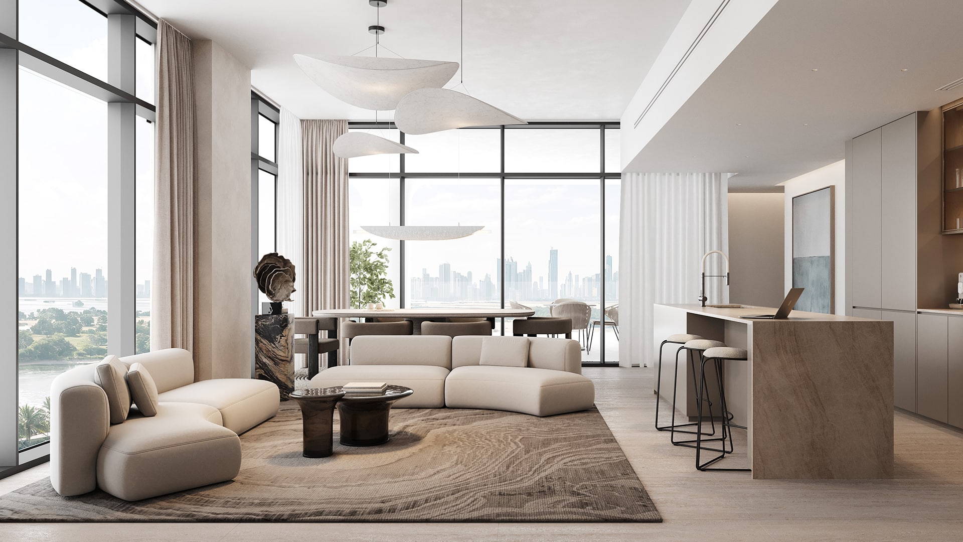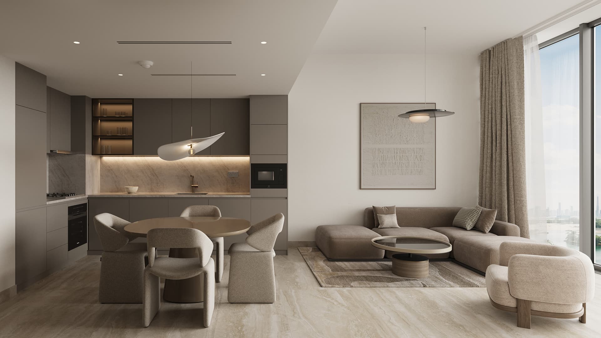 The apartments are designed to emphasize comfort, natural light, and spatial efficiency. Open-plan living areas, refined finishes, and well-proportioned bedrooms create an inviting residential atmosphere. Select units benefit from expansive views, reinforcing a sense of retreat while remaining closely connected to the city.