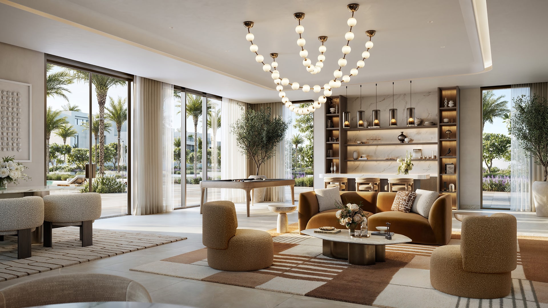 Positioned within an interconnected area of Dubai and framed by major road networks, the community benefits from strong accessibility while preserving a secluded and peaceful atmosphere. The surrounding environment emphasizes greenery, water features, and generous public spaces, encouraging a lifestyle rooted in nature, belonging, and comfort.